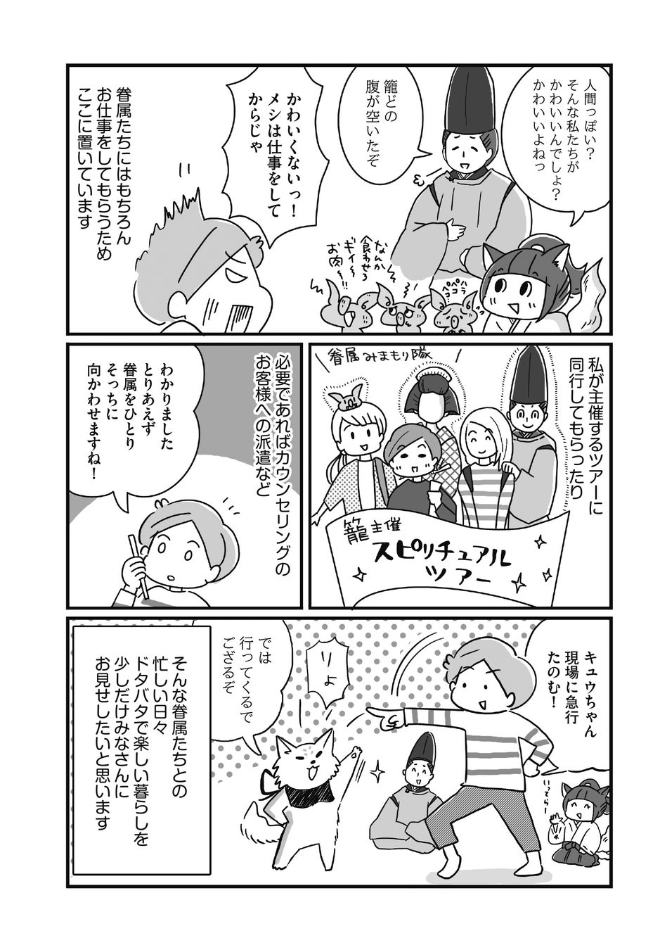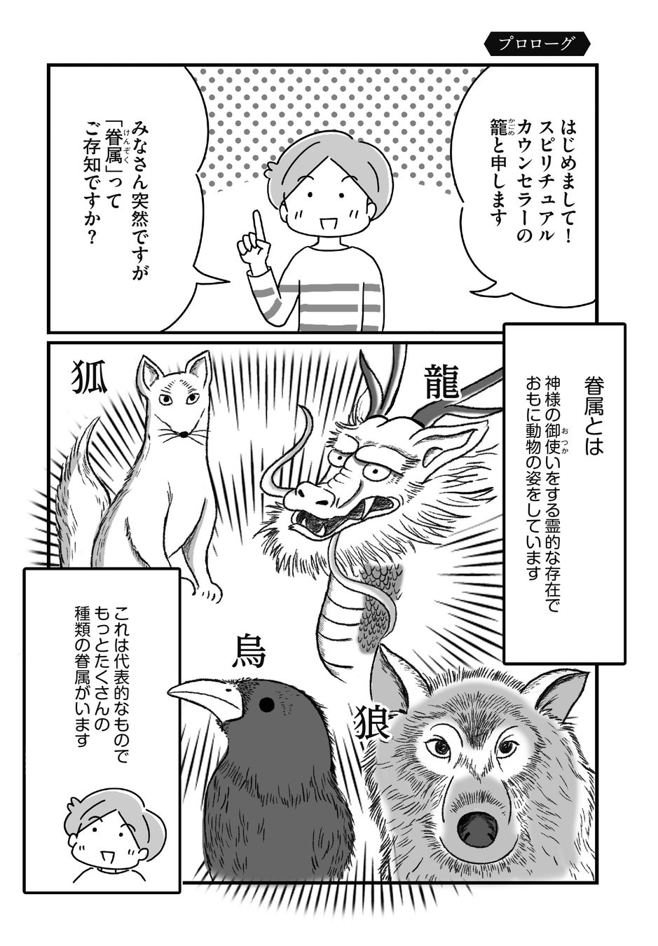 スピリチュアル・カウンセラーの籠(かごめ)は、20体以上の眷属(けんぞく)と暮らしています。神様の御使いであり時に人間を守ってくれる眷属は、意志を持つ個性的なキャラクターぞろい。彼らとの出会いや、視えない世界とこの世のはざまで起こった不思議な実話を描いたスピリチュアル・コミックエッセイが、3月17日に発売されます。