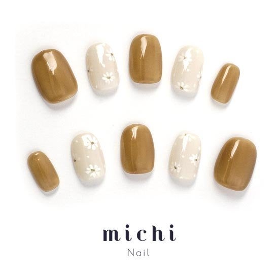 春っぽさは欲しいけどピンクは苦手、、という方にお勧めなのがこちらのネイル。落ち着いたブラウンとベージュカラーで肌なじみも良いネイルです。小花柄は春感を十分に感じられます。どんな服にも合わせやすい万能ネイルです。