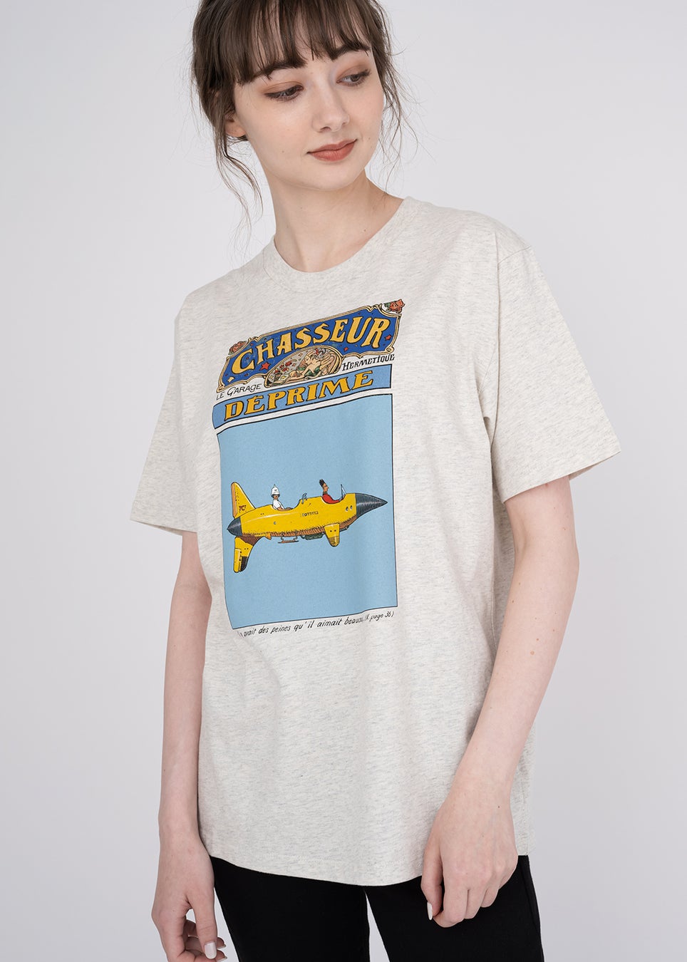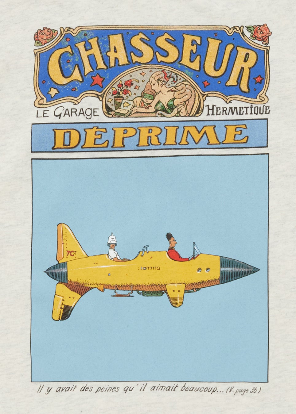 『Le Chasseur Déprime』より。フロントには鮮やかな色使いの表紙デザインを、バックには精細なタッチで描かれた作中の1コマを大胆にプリント。