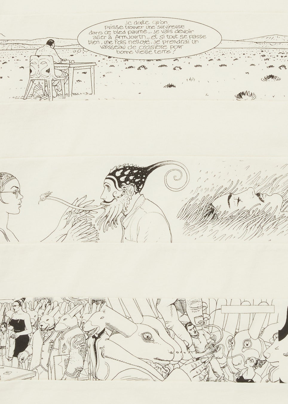 今回のコラボレーションでは、惑星間を旅する主人公グリュベール少佐の、気まぐれな冒険を描いた代表作『Le Major』シリーズを中心にラインナップ。メビウスの緻密で芸術的な作品の数々を是非ご堪能ください。