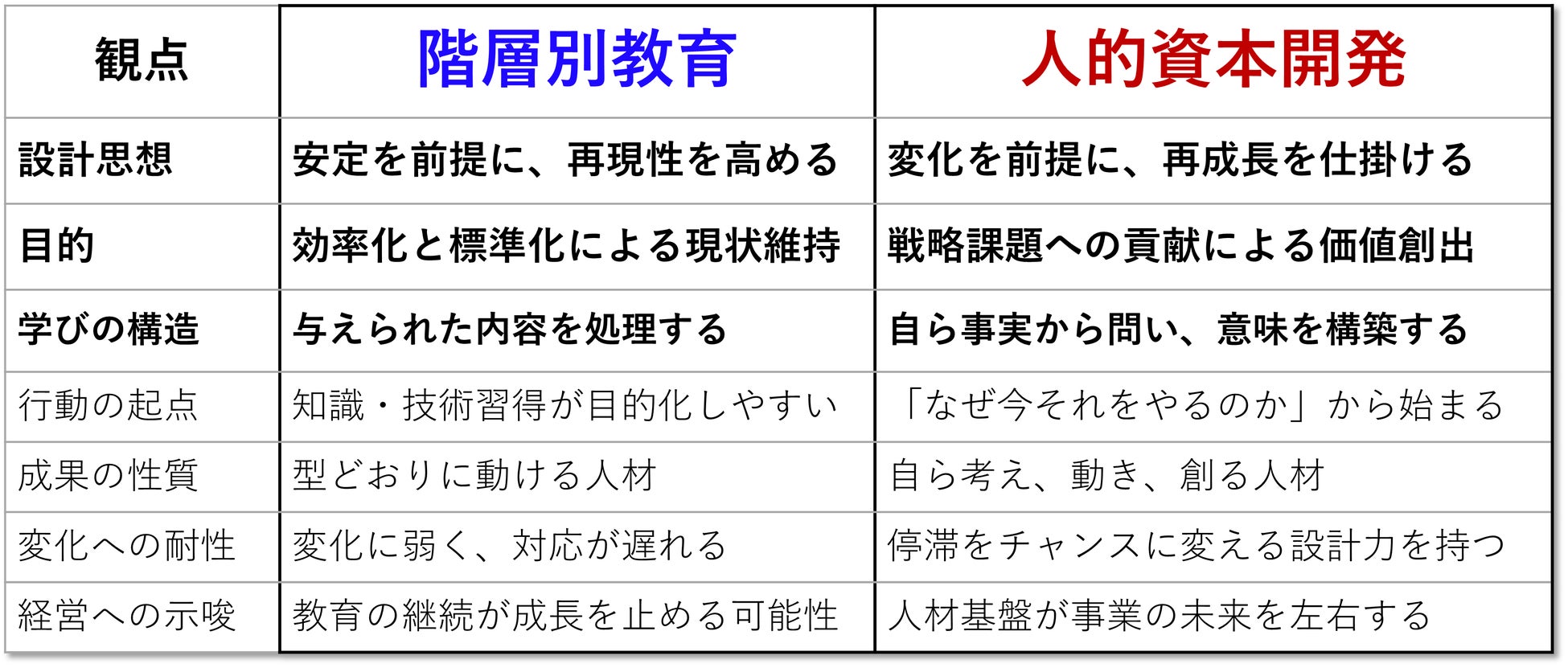 「現状の社員教育(階層別研修)」と「人的資本開発」:企業成長の鍵を握る教育体系の再考
