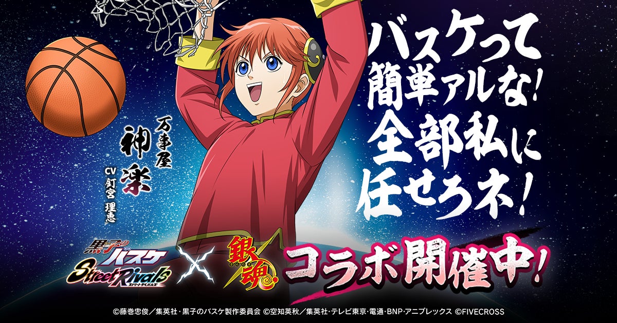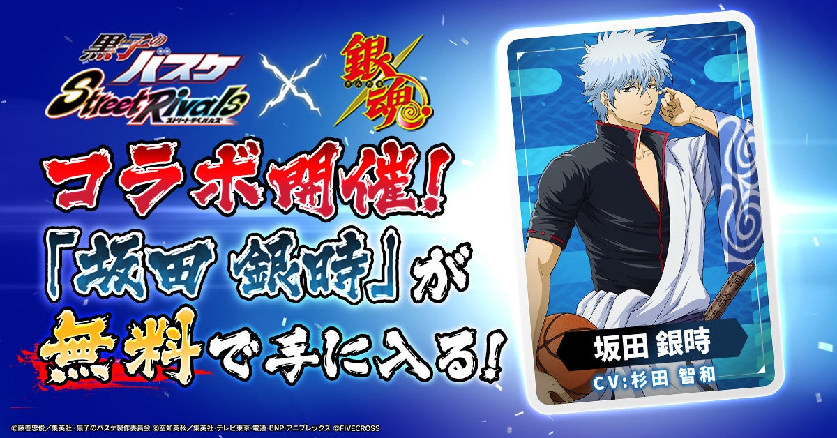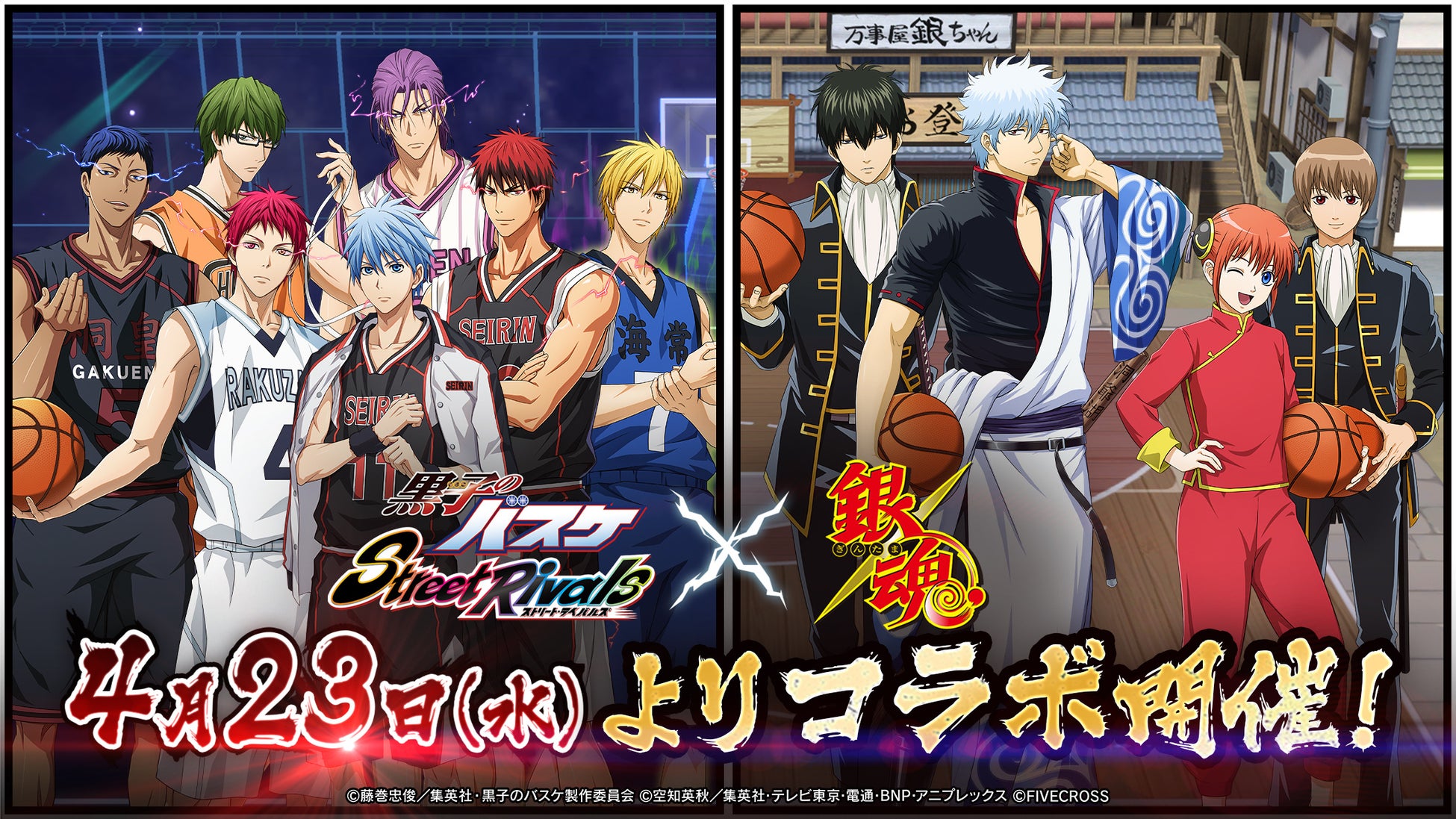 株式会社ファイブクロスは、アニメ『黒子のバスケ』の3Dバスケゲーム『黒子のバスケ Street Rivals』(黒バスSR)において、2025年4月23日(水)からTVアニメ『銀魂』とのコラボレーションを開催いたします。