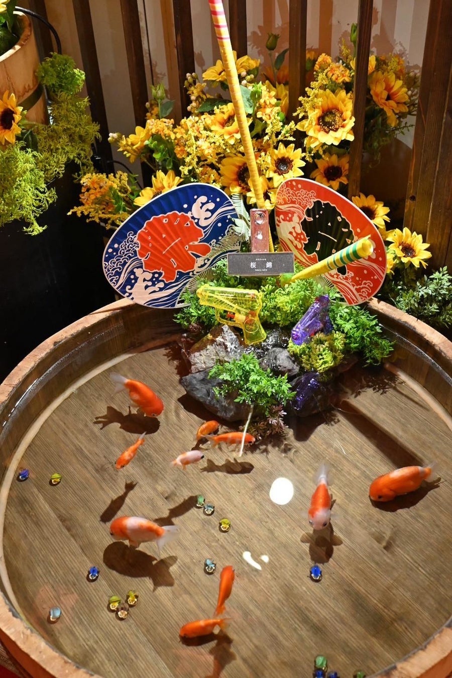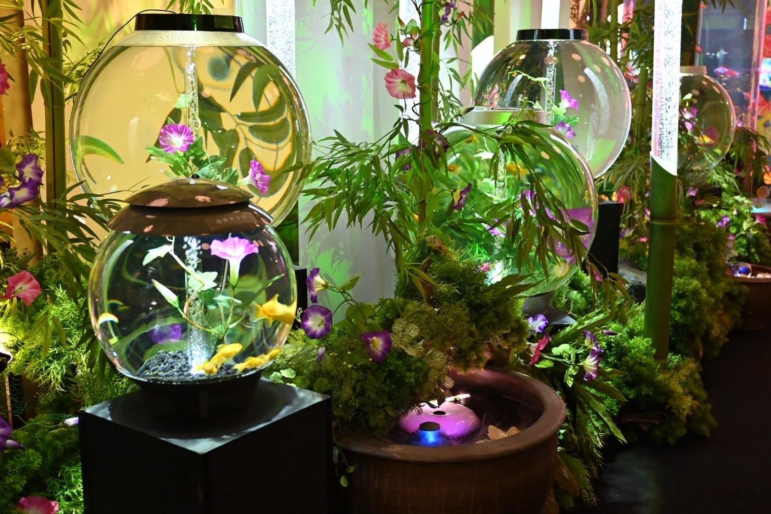 本イベントでは、既存の展示の幻想的な世界観はそのままに、日本の夏の風物詩「お祭り」をテーマに館内を装飾。提灯やのぼり、ひまわりや風鈴をあしらった空間演出、水槽展示の夏仕様アレンジなど、五感で楽しめる特別な空間をご用意しました。