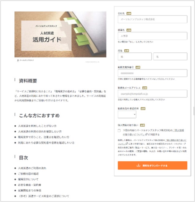 また、採用通知書、機密保持誓約書、労働者代表選出のご案内、抵触日通知書など人材や派遣スタッフを担当される方が、すぐに活用いただける各種フォーマットを無料でダウンロード可能です。*1