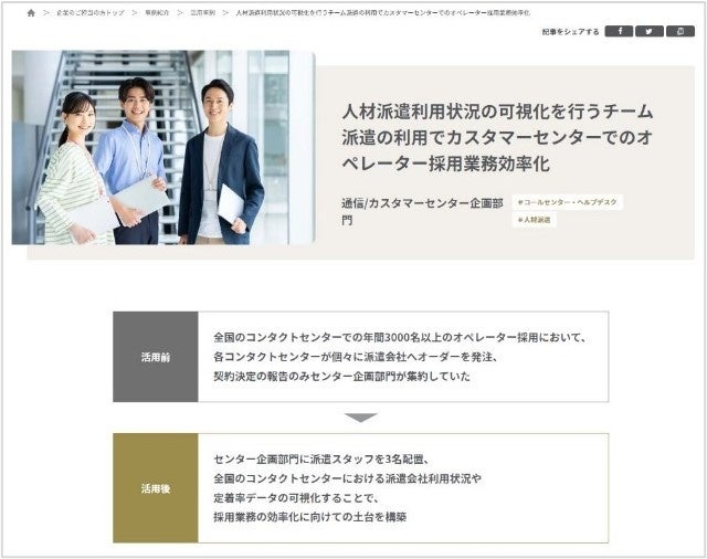 また当社サービスを利用されている企業の導入事例やご担当者の声、そこではたらく派遣スタッフの声なども掲載。同じような課題やお悩みをお持ちの企業に、具体的な解決策をイメージしていただけるような情報提供を行っています。