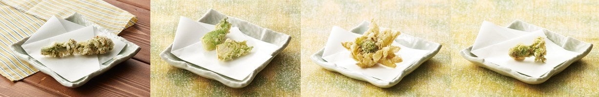 第3弾は「ふきのとう」「たらの芽」の2種類を予定しています。「ふきのとう」は、独特な香りと苦みが強く感じられますが、天ぷらにすることでよりほっくりとした食感が味わえます。そして、「たらの芽」は、くせの少ないほのかな苦みと、もっちり・ほくほくの歯ざわりで、他の旬菜と異なる食感を感じていただけます。