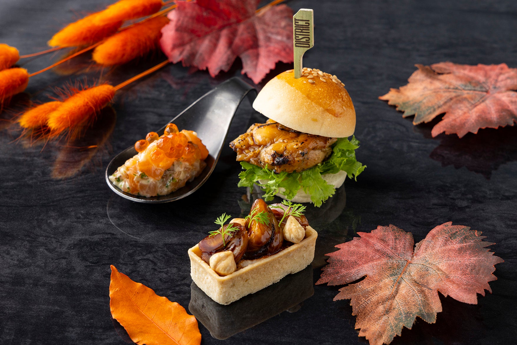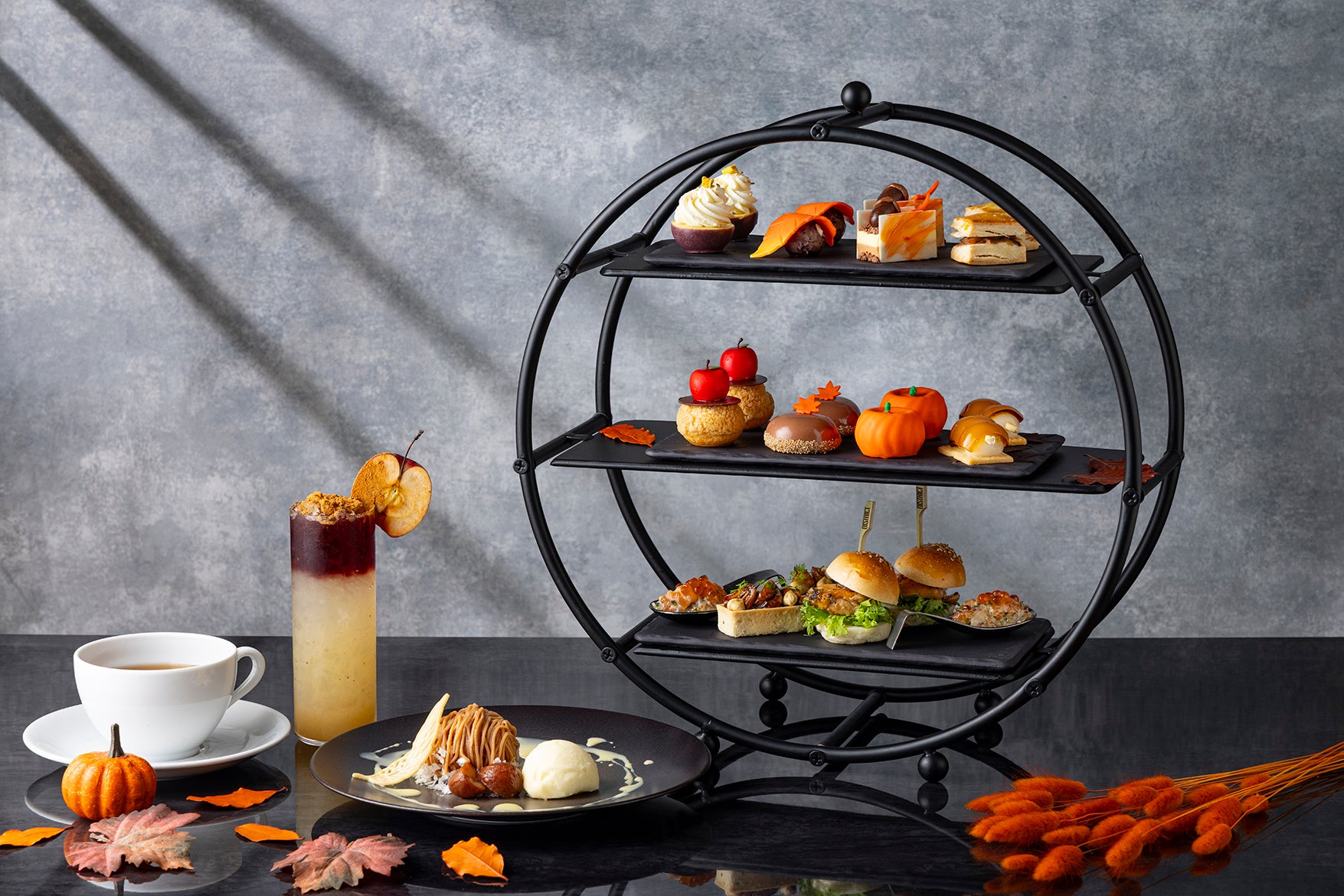 見た目にも味わいにも“実りの秋”を感じられるラインナップに仕上げました。彩り豊かなスイーツとセイボリーが織りなす、紅葉のように深まる季節の味覚をお楽しみいただけます。