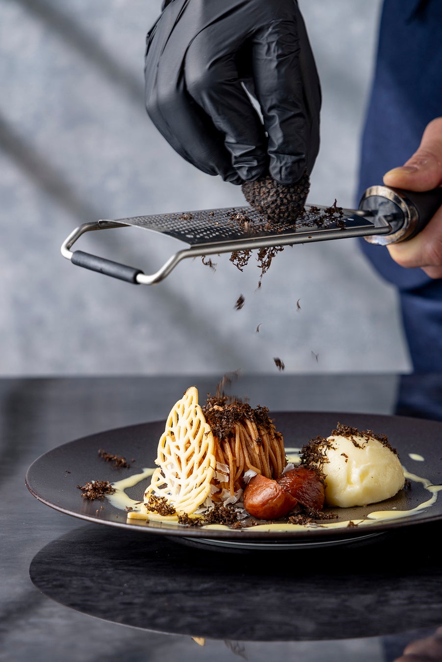 目の前で芳醇な黒トリュフを削って仕上げる