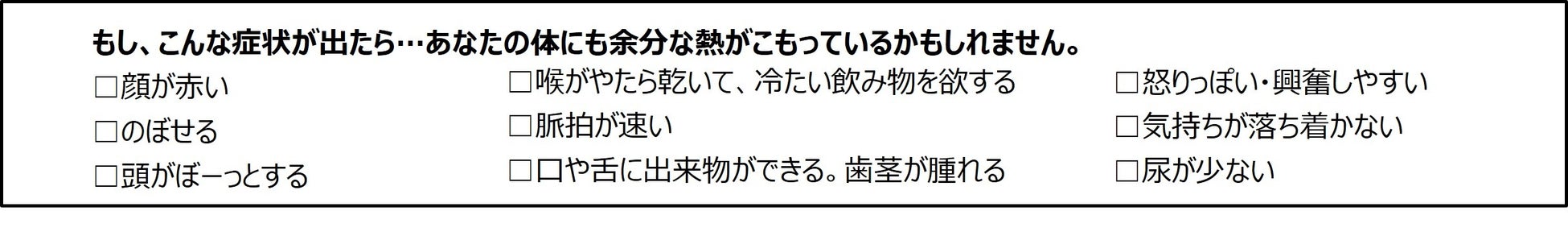 余分な熱を下げ、熱により不足した潤いを補いながら、軽い熱中症や口の渇きなどの症状を改善します。