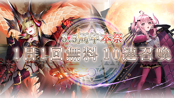 近日開催予定の「3.5周年後夜祭記念キャンペーン」でも無料10連召喚を開催予定です!
