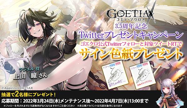 株式会社アピリッツ(本社:東京都渋谷区、代表取締役社長執行役員CEO:和田 順児)が開発・運営するスマートフォンアプリ・ブラウザゲーム・PlayStation®4版『ゴエティアクロス』は、2022年3月27日(日)でサービス開始3.5周年を迎えました。