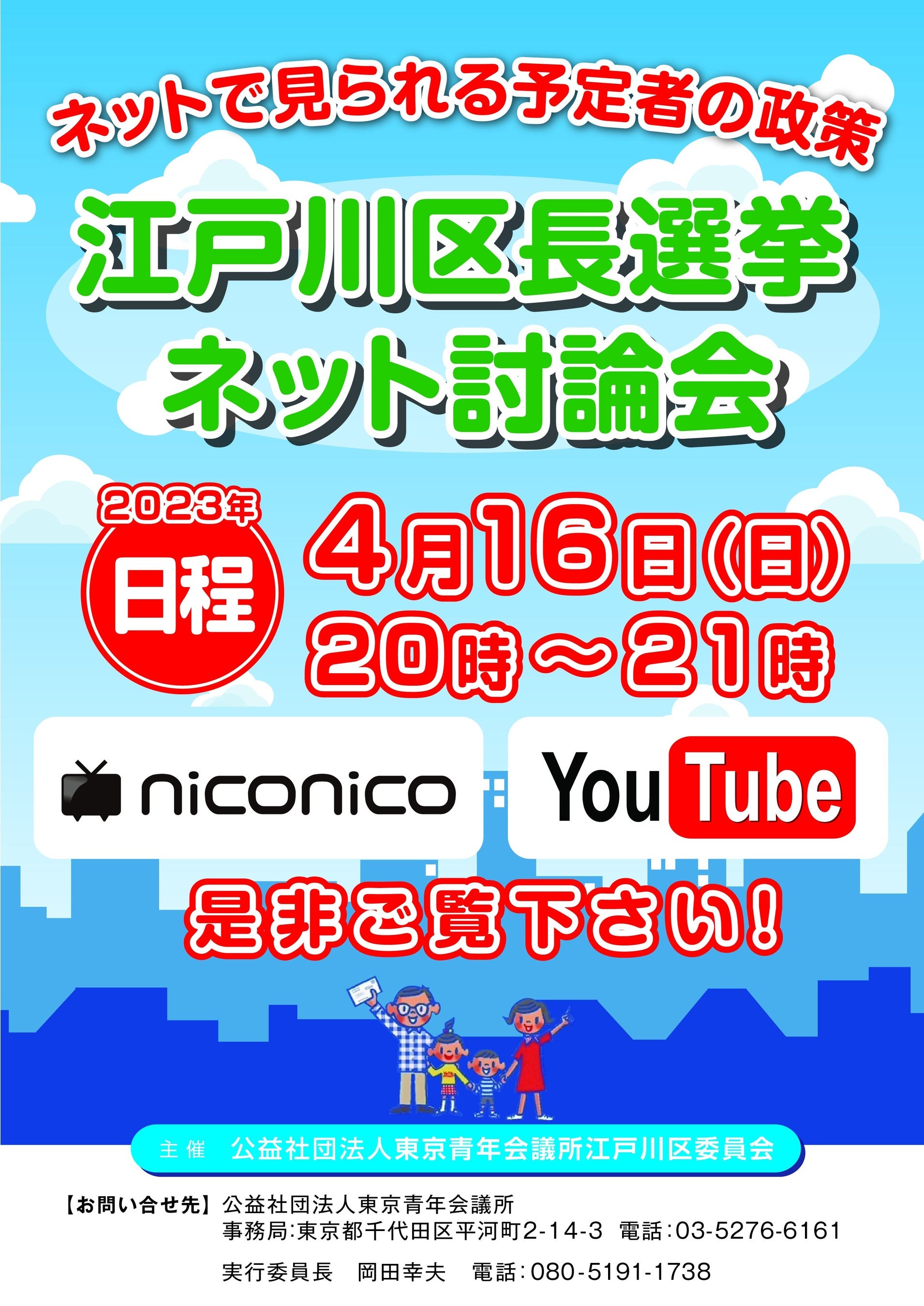 2023年 #江戸川区長選挙 #公開討論会を4月16日(日)20時00分よりニコニコ生配信!