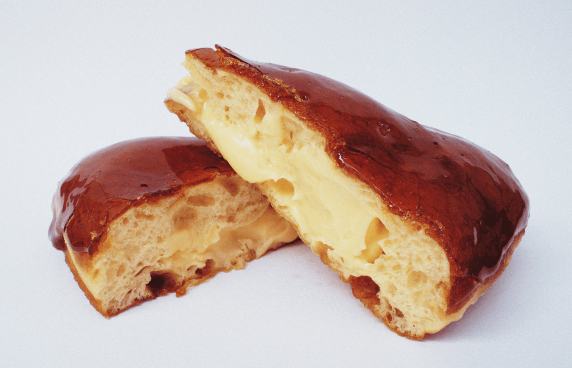 ~ カリッとしたカラメル、ふわっとした生地、とろりとした手作りカスタード。3つの食感が楽しめるさんかくのドーナツ ~