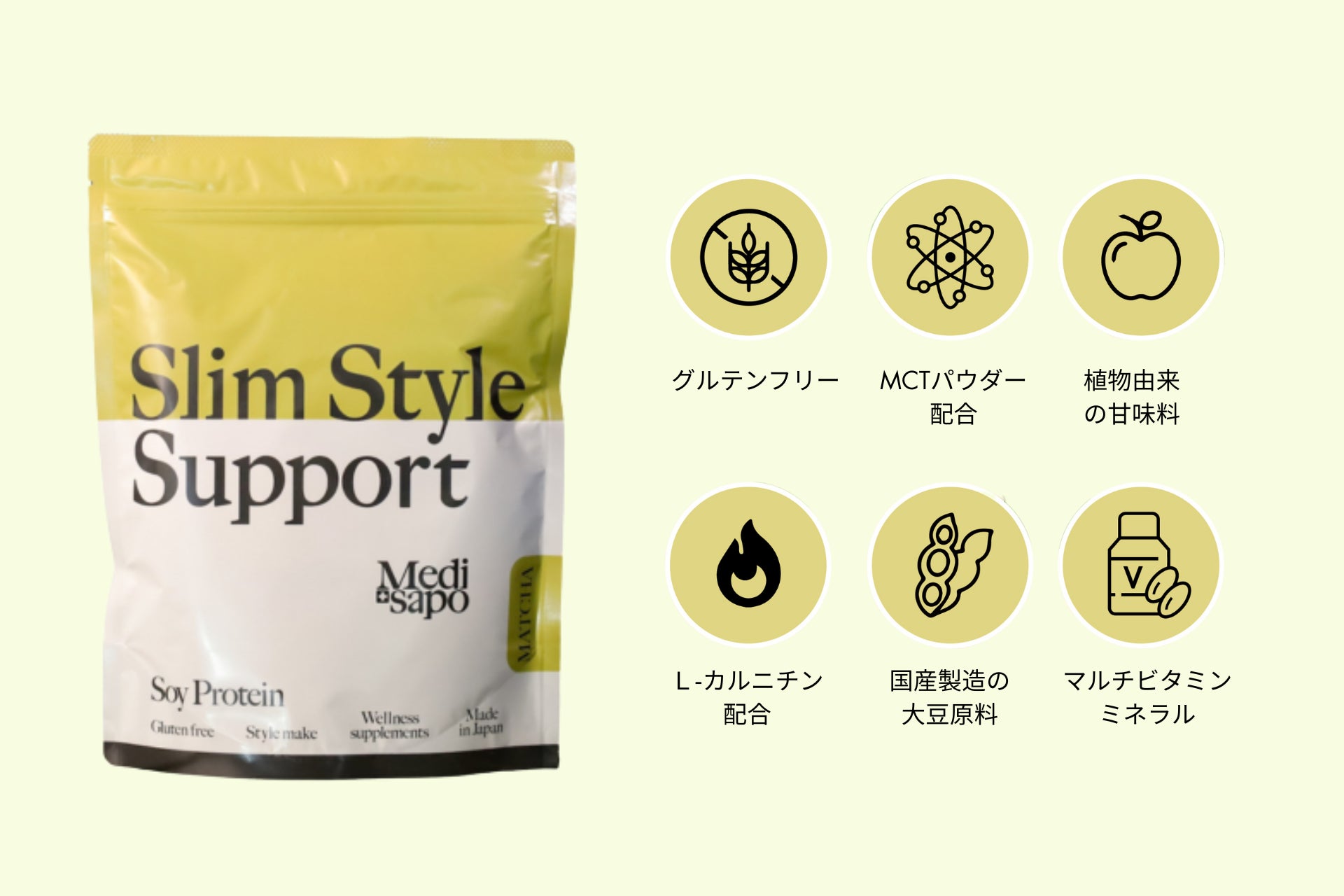 【 Medisapo 】と【 Slim Style Support 】(※以下SSS)は併用することで、より高い美肌効果を実感できます。タンパク質は肌だけでなく、爪や髪の健康にも欠かせない栄養素。内側からのアプローチで、美のトータルサポートを実現します。