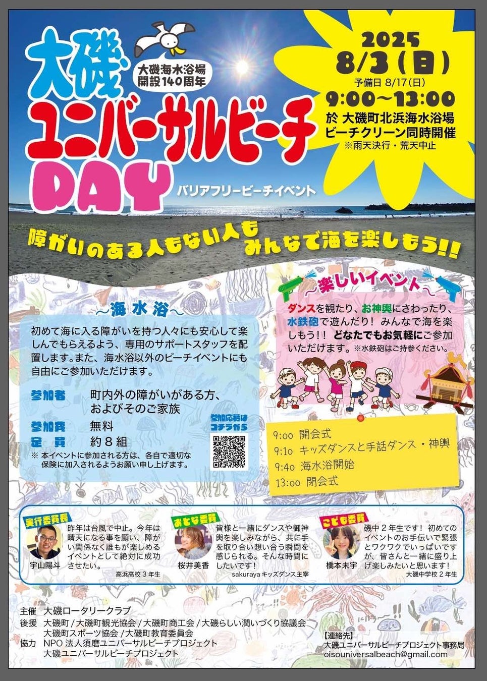 協 力:NPO法人須磨ユニバーサルビーチプロジェクト、大磯ユニバーサルビーチプロジェクト、大磯神輿連合會