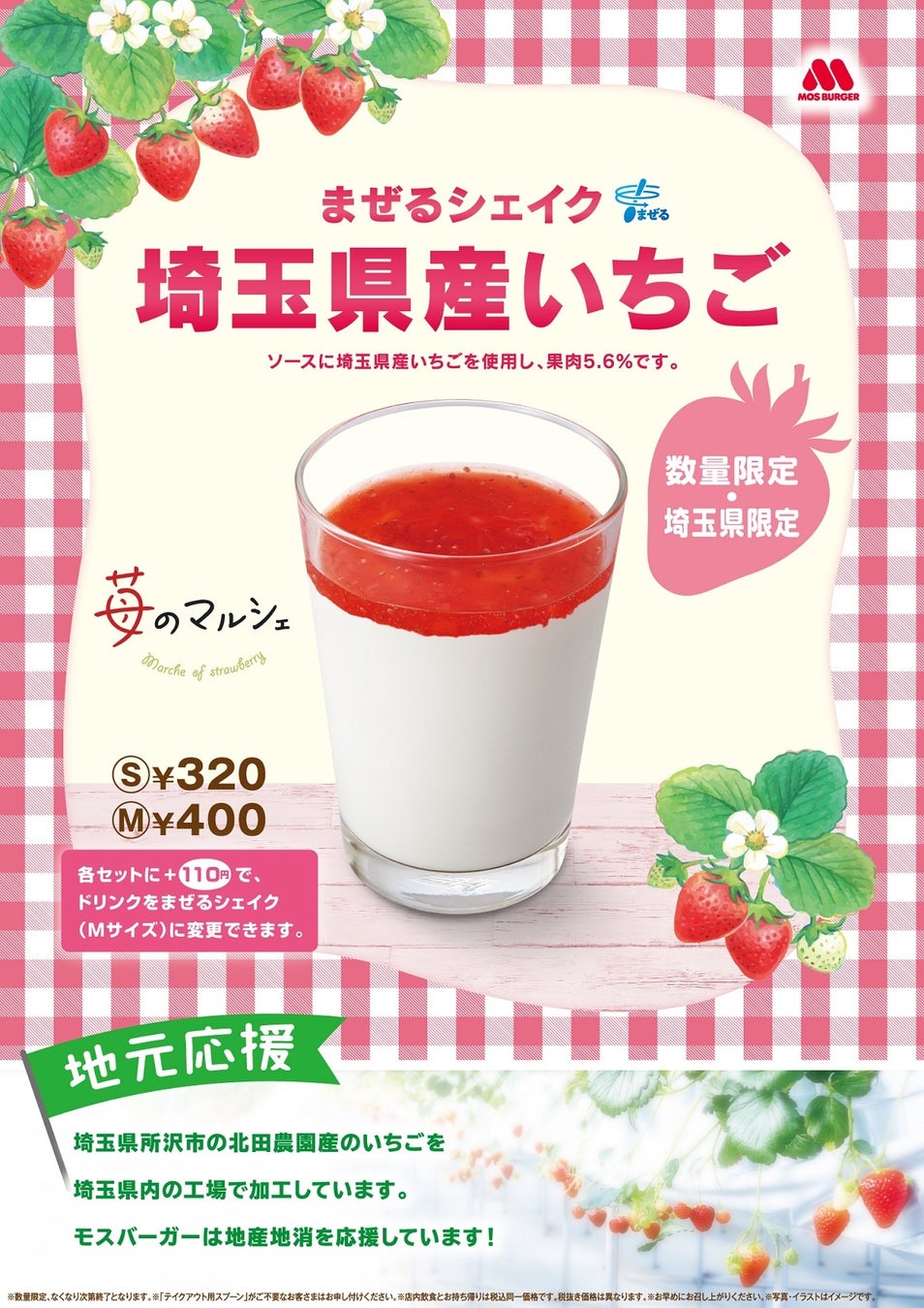 モスバーガーを展開する株式会社モスフードサービス(代表取締役社長:中村 栄輔、本社:東京都品川区)では、2022年7月13日(水)から埼玉県内のモスバーガー62店舗(一部店舗除く全店)にて、埼玉県産のいちごを使用した「まぜるシェイク 埼玉県産いちご」を数量限定・埼玉県限定で復活販売します。