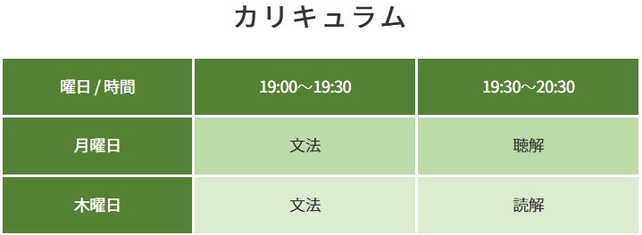 毎週木曜日 19:00~20:30 (週2回、各90分)