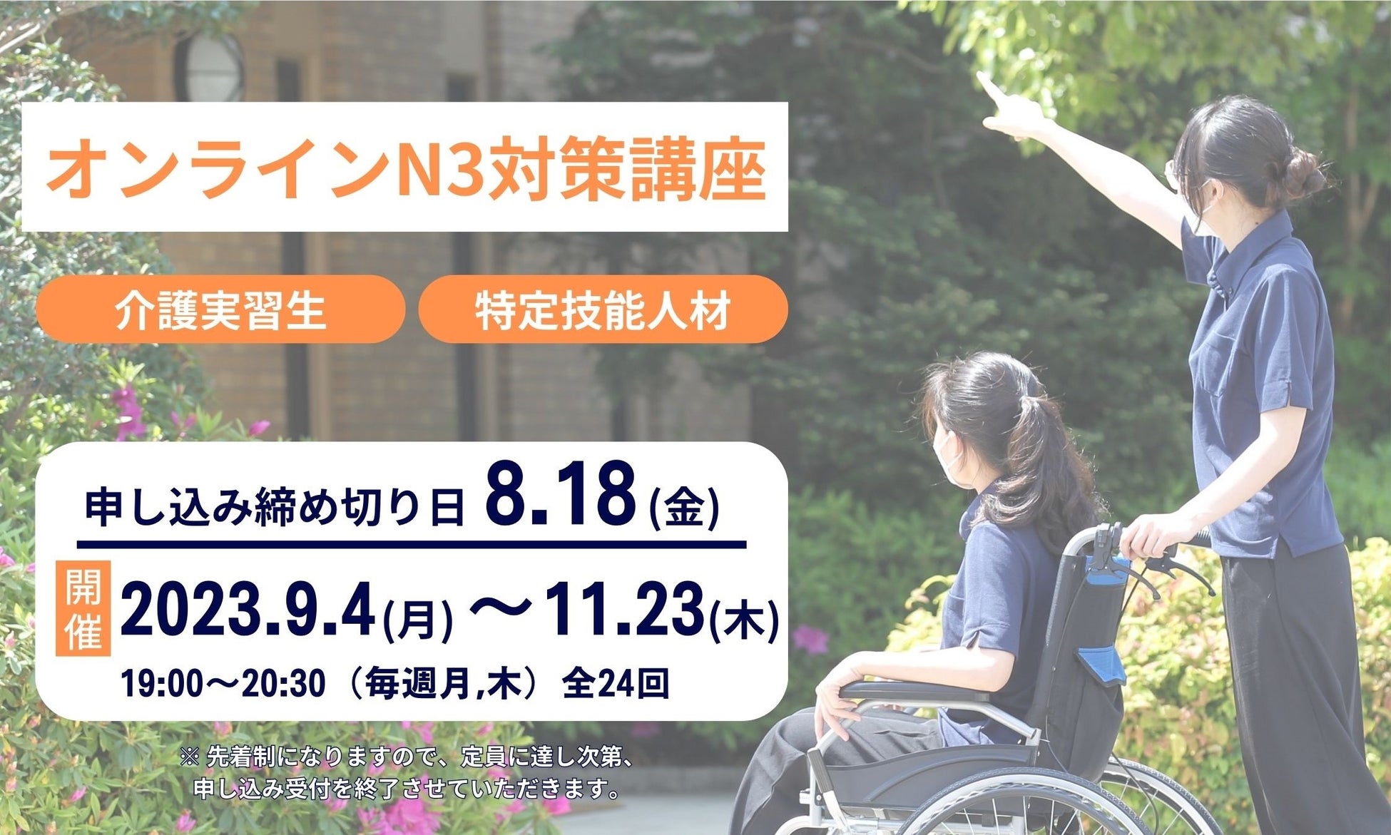 【N3対策講座申し込み受付開始‼】外国人介護実習生、特定技能人材向けオンライン講座<技能実習生の入国後講習施設>