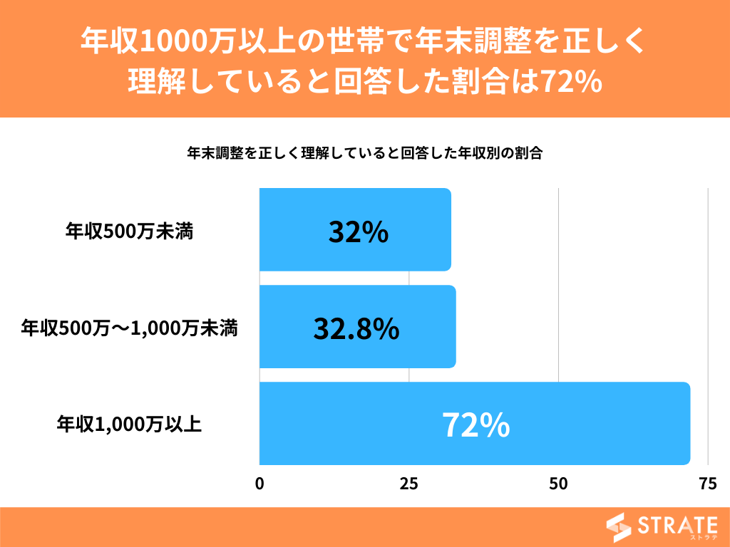 【年収1000万以上の世帯で年末調整を正しく理解していると回答した割合は72%】
