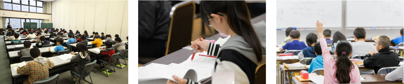 1クラス25名前後の学力別クラス編成。メイン講師のほか、質問対応講師が1クラスに4名つき、一人ひとりをきめ細かくサポートします。