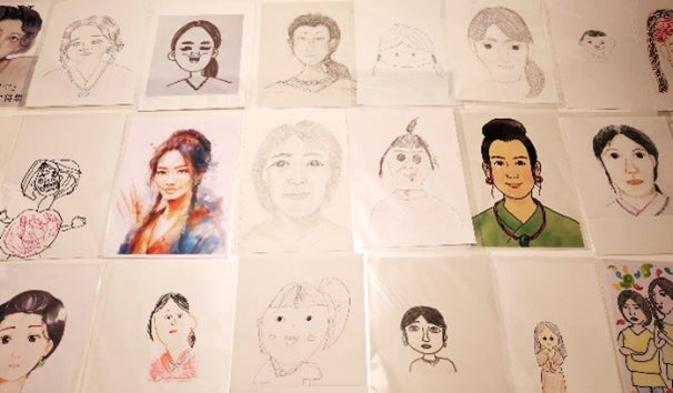 復顔像の公開前に、弥生人の女性の顔を想像でイラストに描いてもらう公募企画を2月20日から3月17日まで実施。応募のあった24作品を展示中です。小さなお子様の描いたかわいらしいイラストからプロ級のリアルイラストまで、多彩な作品が集まりました。来園者の投票で優秀賞を決定します。