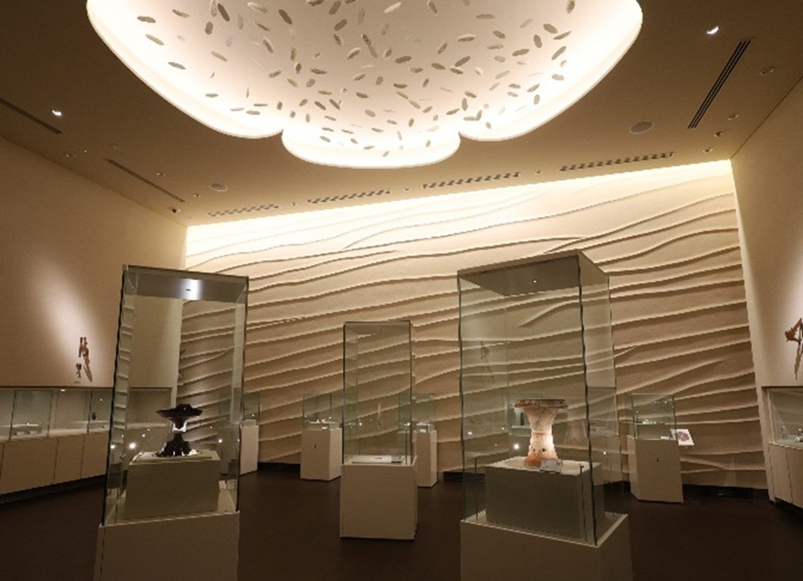 国指定重要文化財1353点を適切な保存環境で収蔵展示するため施設で、重要文化財展示室、企画展示室の2室で重要文化財を展示しています。従来の考古学系展示施設とは異なり、「弥生の美」をテーマとし、青谷上寺地遺跡出土品の工芸的な美しさを引き出す展示空間を実現しています。
