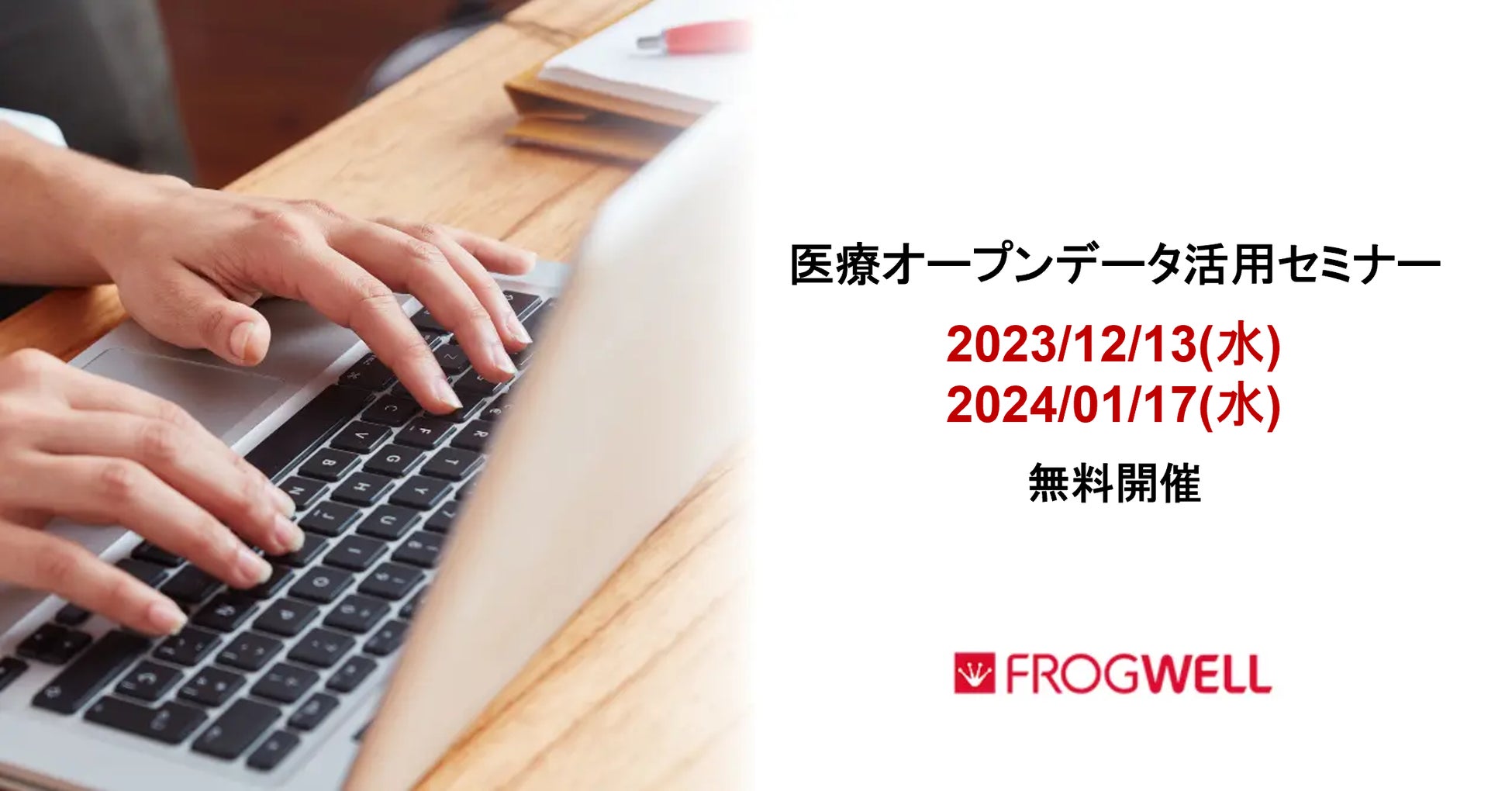 【無料オンライン】医療機関でのビックデータの活用・解析を実現したい方に向け、医療オープンデータ活用セミナーを2023/12/13(水)、2024/1/17(水)に開催【フロッグウェル株式会社】