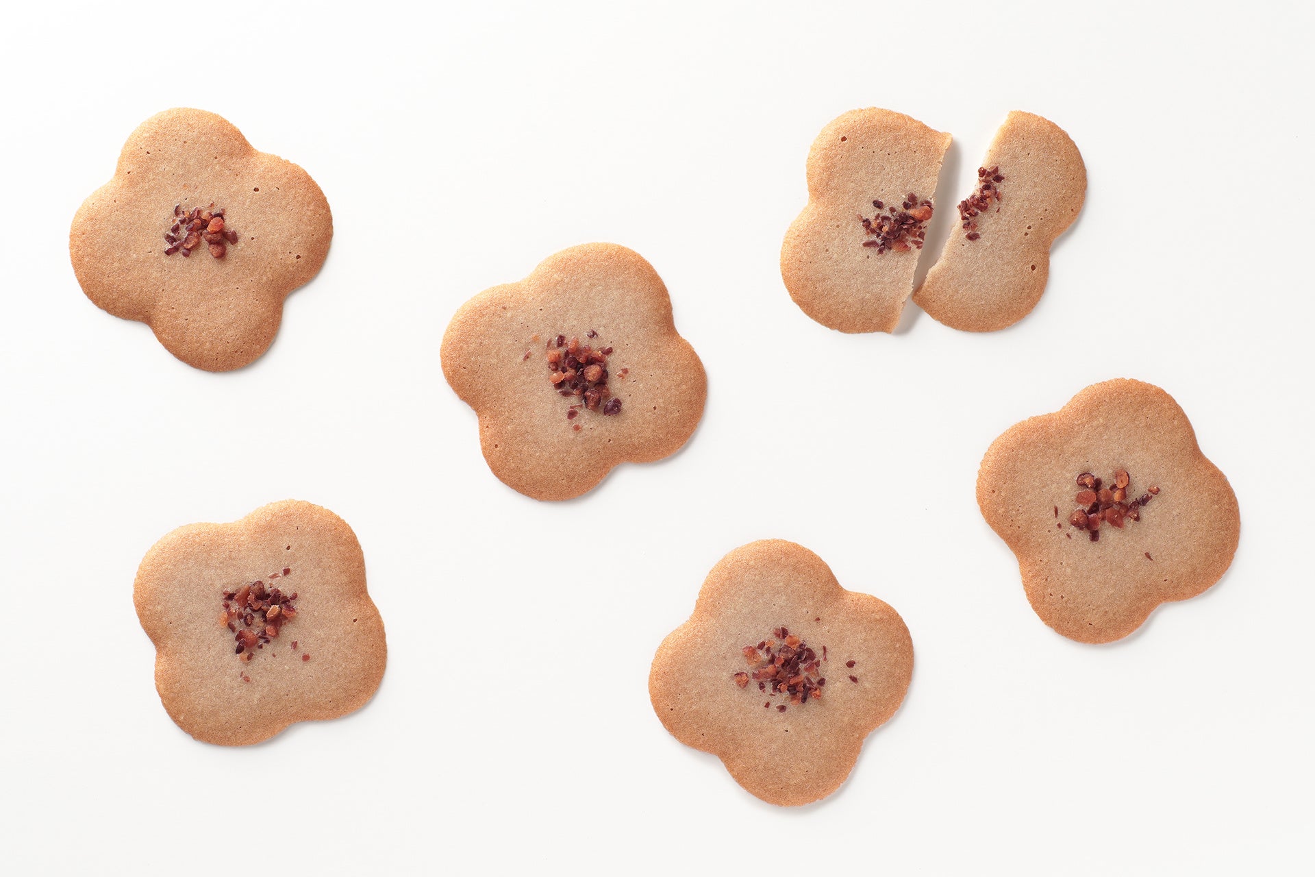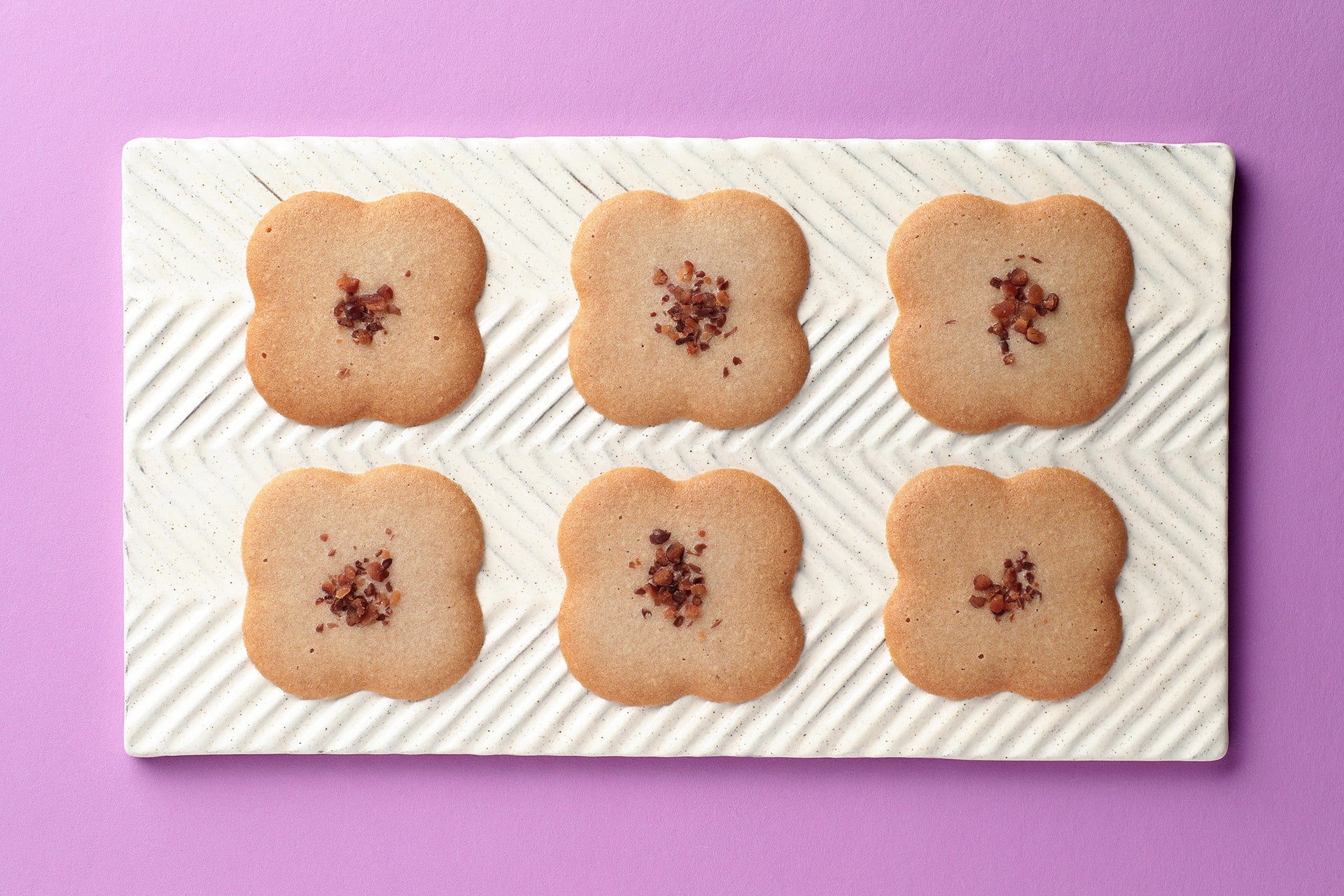 お花にも見えるMIYUKAのロゴマークをかたどった「花紫」は、米粉の軽やかさとあずきのやさしい風味が調和する、繊細な焼き菓子です。