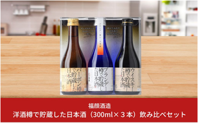返礼品: 洋酒樽で貯蔵した日本酒飲み比べセット 300ml×3本 (寄付額:10,000円)