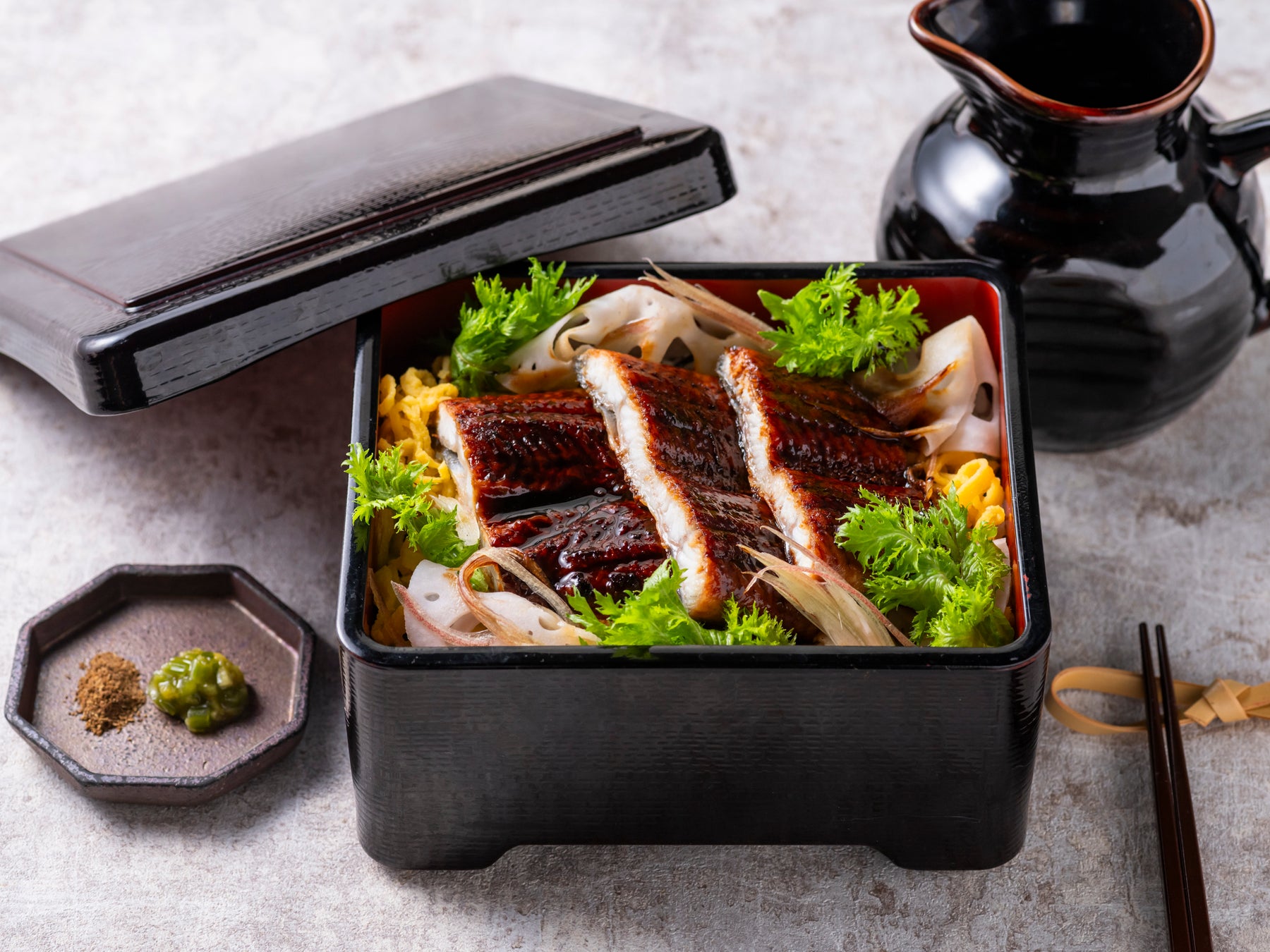 ふっくらとした鰻をタレで香ばしく焼き上げております。茎山葵、山椒とお好みのお召し上がり方でご賞味ください。