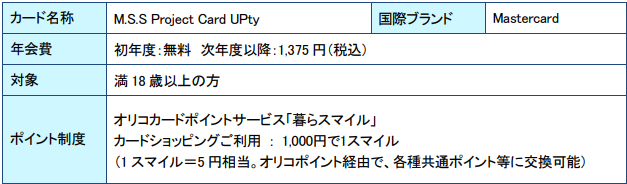 株式会社オリエントコーポレーション(東京都千代田区、代表取締役社長:飯盛 徹夫、以下「オリコ」)は、株式会社エイチ・ツー・オーカンパニー(愛知県名古屋市中川区、代表取締役社長:池田 浩之)と提携し、4人組ゲーム実況・音楽制作ユニット「M.S.S Project」との提携クレジットカード「M.S.S Project Card UPty」の発行を2023年3月1日より開始いたします。