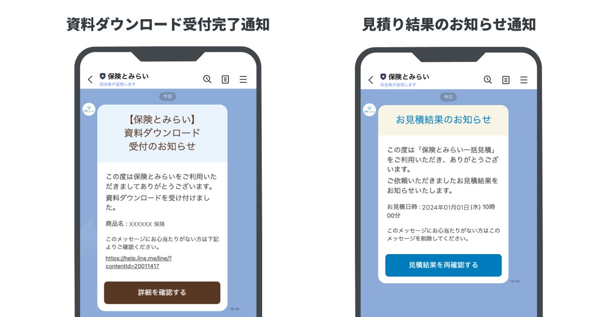 これにより、ユーザーは申し込んだ保険の資料をまとめて確認できるURLの通知や保険の見積り結果のお知らせなど、保険を比較・検討する上で見逃したくない重要な通知をLINEを通じてタイムリーに受け取ることが可能となり、利便性向上につながっています。