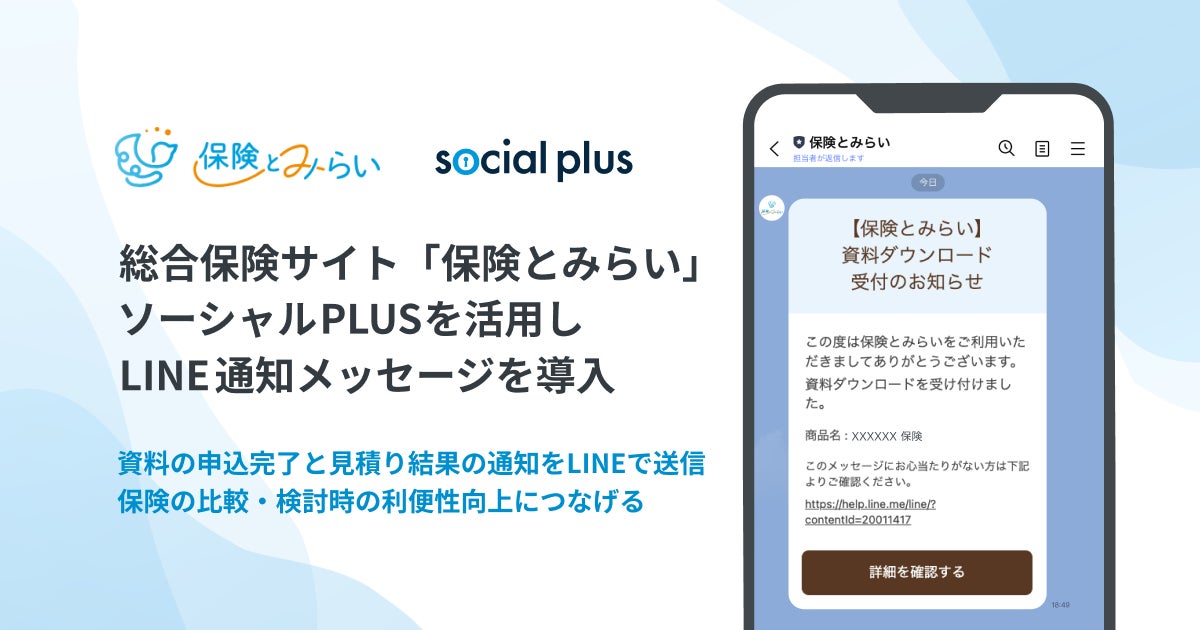 総合保険サイト「保険とみらい」、ソーシャルPLUSを活用しLINE通知メッセージを導入
