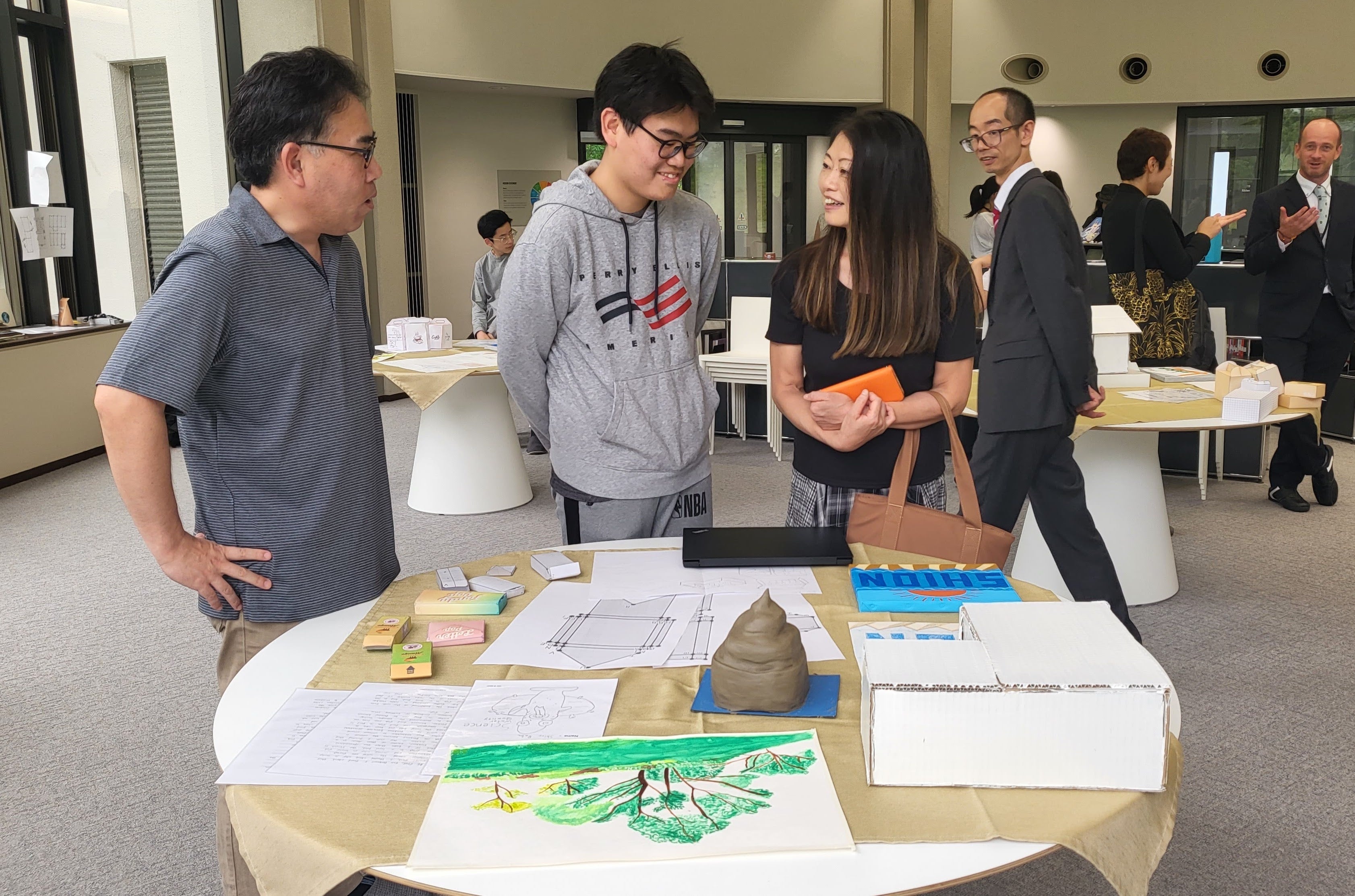 プログラム最終日には、5つの教科にまたがる「テーマパーク作り」プロジェクトをはじめとする学習成果を保護者に向けて展示発表しました。参加者の生徒は「入学に向けた英語力向上が出来ただけでなく、創造性に富む授業を楽しめたのでとても満足しています。」と感想を述べています。また、来場した保護者からは「3ヶ月の準備課程で過ごした仲間との時間はかけがえのない思い出になったようです。入学前にも関わらず、充実した学校生活と寮生活を提供してくださり感謝しています。」との声をいただくなど、展示発表は大盛況に幕を閉じました。