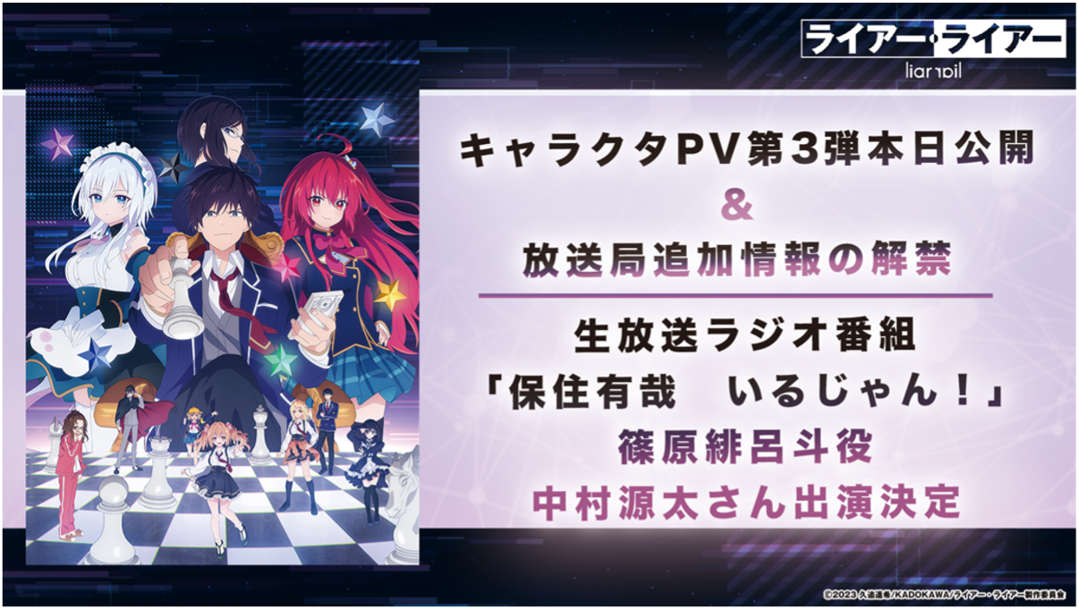 TVアニメ『ライアー・ライアー』キャラクターPV第3弾本日初公開&放送局追加決定!さらに7月11日(火)放送の生放送ラジオ番組「保住有哉 いるじゃん!」へ篠原緋呂斗役、中村源太さん出演決定!