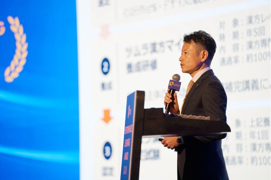 この度、ビジネスインパクト部門賞をいただき光栄に思います。当社の取り組みが評価されたことや、これまで支えてくださったすべての関係者の皆様に、心より感謝申し上げます。私たちは、学習の成果を実践的な成果に結びつけ、営業担当者の成長に貢献できるよう努めてまいりました。今回の受賞は、学習に取り組んだ一人ひとりが認められた証として、非常に嬉しく思っております。今後も経営理念である「自然と健康を科学する」を胸に、漢方医学と西洋医学の融合による世界で類のない最高の医療提供に貢献していく所存です。引き続きご支援賜りますようお願い申し上げます。