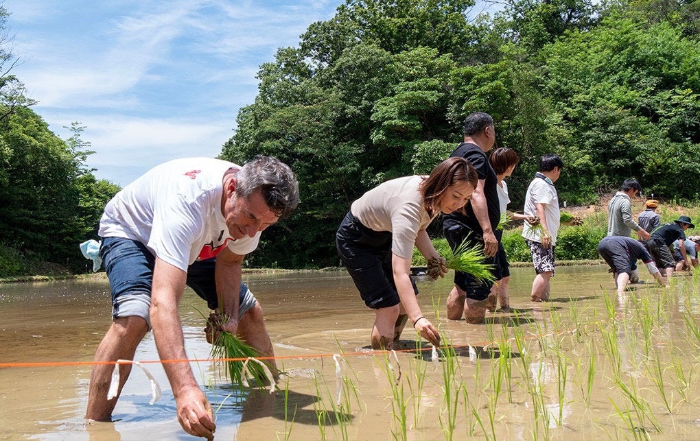 地元住民や観光客、教育団体、パソナ農援隊が取り組む企業向けヘルスケアサポートプログラム「Wellness Farm Club」の参画企業を対象に稲作体験等を実施