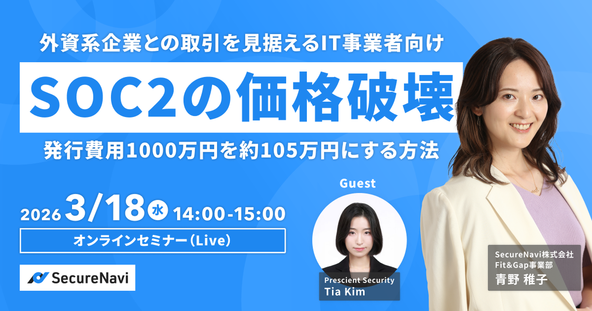 SecureNaviでは、今回発表した取り組みに関連し、SOC 2対応の実務や考え方を解説するオンラインセミナーを開催予定です。