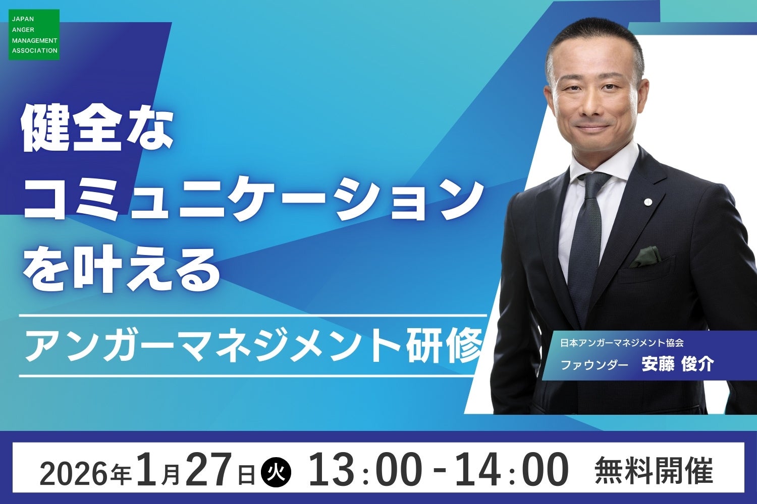 【1月27日(火)13:00開催】アンガーマネジメントの第一人者、安藤俊介による無料オンラインセミナー「健全なコミュニケーションを叶えるアンガーマネジメント研修」好評につきアーカイブ配信決定