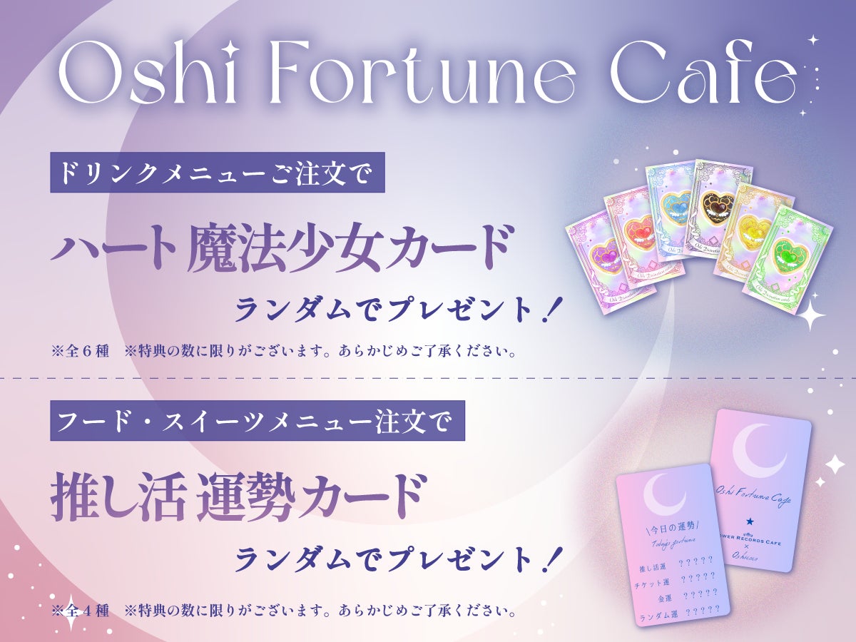 あなたの推し活タイプがわかる「推しタイプ診断オーダーシート」や、メニュー注文でもらえる「ハート魔法少女カード」「推し活運勢カード」といった、体験型カフェ企画を実施予定です。