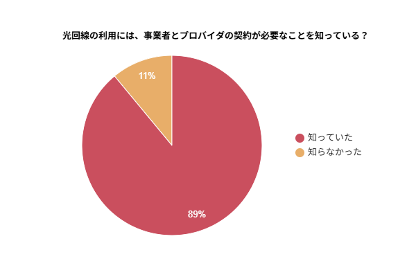 光回線の開通時に「光回線事業者」と「プロバイダ」の契約が必要なことを知っている方が89%