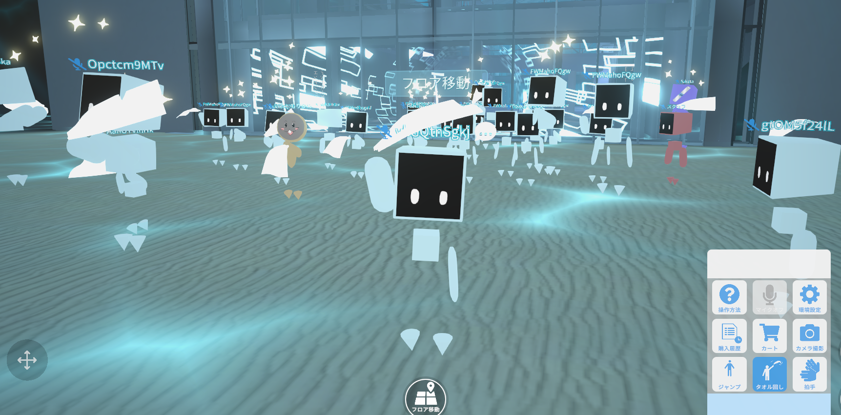 ブラウザから簡単にアクセスできるメタバース3D空間です。メタバース空間内では、自分のアバターを操作しながらEC機能や音声通話機能、チャット機能、翻訳機能で世界中のユーザーとコミュニケーションを取りながらお買い物やライブ配信を楽しむことができます。