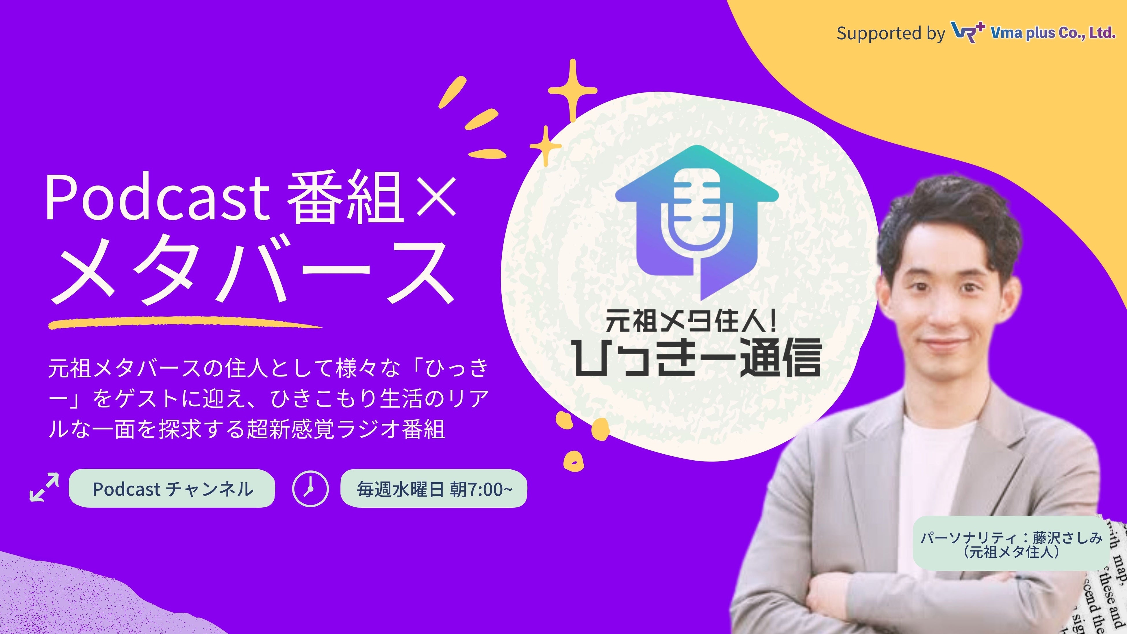 ひきこもりの俗称である「ひっきー」を元祖メタバースの住人としてゲストに迎え、ひきこもり生活のあるあるネタやリアルな一面を探求する超新感覚のラジオ番組です。株式会社SHABEL代表であり、落語家でもある藤澤 さしみ様をパーソナリティに迎え、彼自身のひきこもり経験をもとに様々な話題を展開します。
