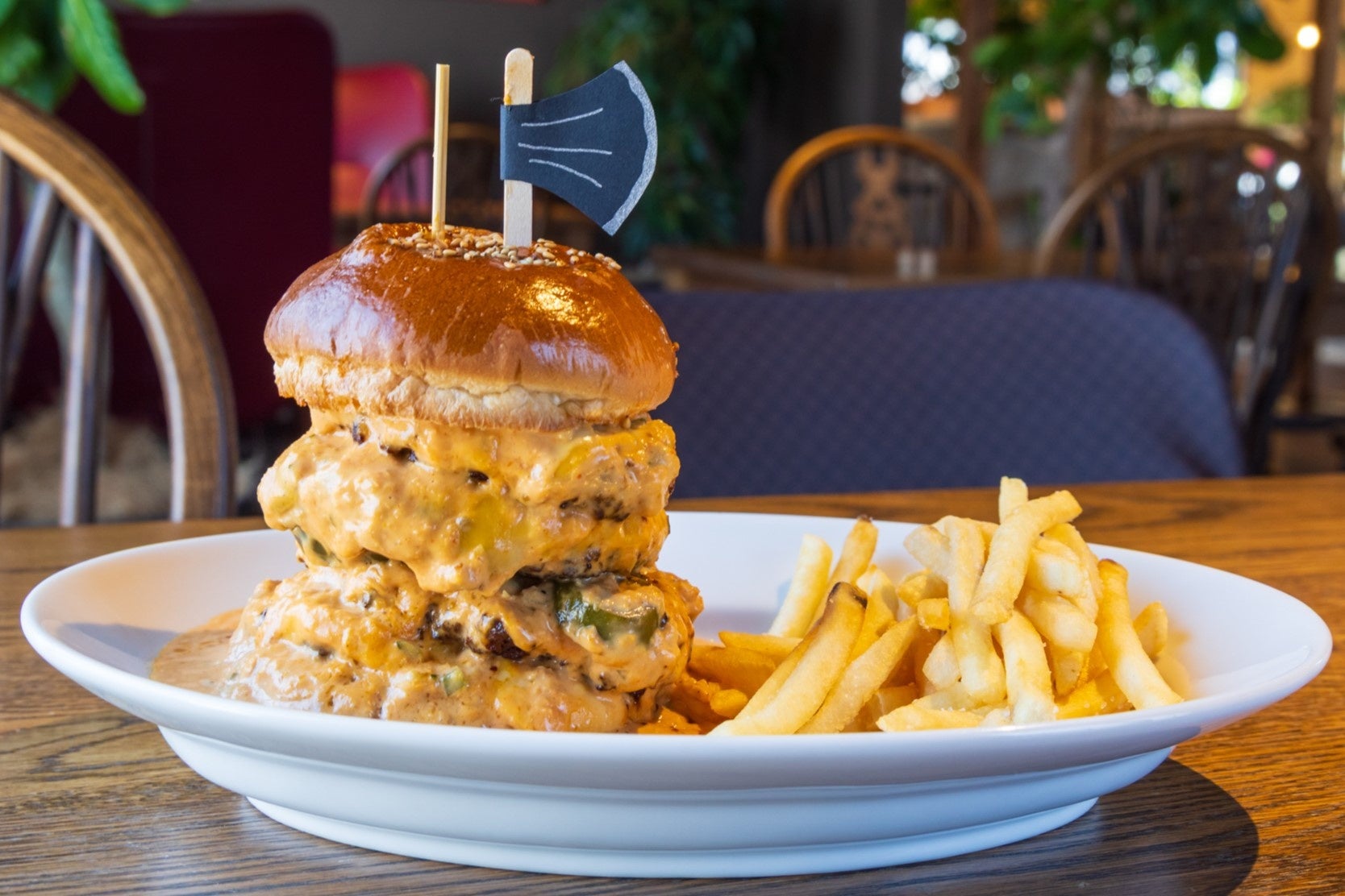 足柄牛500gのSMASHパティを4枚重ねた重量級バーガーに、ハラペーニョをトッピング。刺激もボリュームもMAXな、まさに“ファイティングバーガー”。