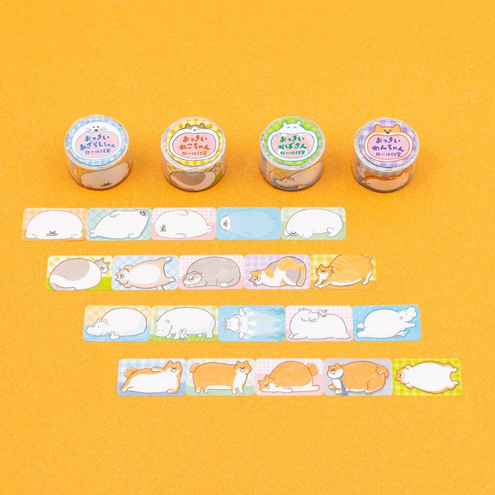 「ロール付箋」はナカバヤシオリジナルイラストの「GentleDogs」、「おっきいあにまる」を採用した全面のり付箋です。GentleDogsのラインアップはブルテリア、シュナウザー、コーギー、ハスキーの4犬種。おっきいあにまるはあざらし、ねこ、かば、犬をラインアップしています。