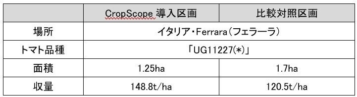 「CropScope」初導入となる北イタリアでの実証試験では、「CropScope」を活用していない区画と比較して、約19%少ない灌漑量で収量を約23%増加することができました。これにより、今まで「CropScope」を導入していた地域とは気候や土質などが異なる新たな栽培環境でも、良好な成果が得られることを確認しました。またポルトガルでは、熟練指導者の技術も組み合わせることで、約21ha(2圃場合計)と大規模な商用圃場で148t/haと高い収量を得ることができました。
