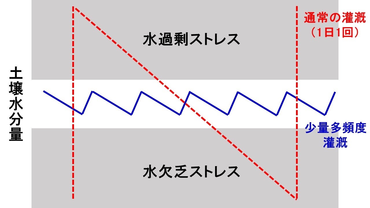 (※4)作物が必要とする量の水や肥料を多数回に分けて少しずつ与え、作物にとって最適な土壌水分量を保つ栽培手法のこと。