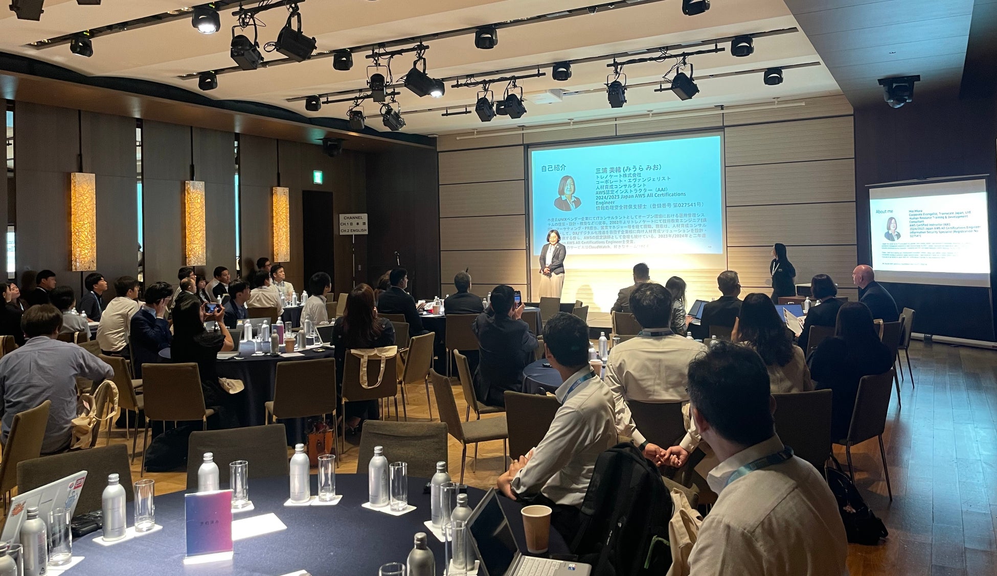 本登壇では、同社のコーポレート・エヴァンジェリストでAWS認定インストラクターでもある三浦 美緒と、AWS認定インストラクターアワードを日本で3年連続で受賞し、殿堂入りも果たしたAWS認定インストラクターの山下 光洋が登壇し、それぞれ「トレノケートの人材育成の未来」と「CSAT(Customer Satisfaction)向上の実践」について発表を行いました。