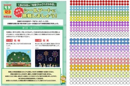 『宅配クック ワン・ツゥ・スリー』では、利用者に日頃の感謝の気持ちを表す特別な日として1月23日を“123の日”と設定し、“ご馳走の日”※1と併せてスペシャルメニューのお弁当と、ちぎり絵や塗り絵パズルなどご自宅でも手軽に楽しんでいただける記念品をお届けしてきました。今回は、令和6年能登半島地震から1年となる2025年1月に、『宅配クック ワン・ツゥ・スリー』を通じて被災地を応援したいという想いで「越国弁当」をご用意いたしました。北陸4県である新潟、富山、石川、福井の郷土料理をお楽しみいただけるお弁当です。石川県輪島市では 2024年1月に震災、9月に豪雨災害があり、未だ復旧までの道のりが困難な状況下にあります。海と山に囲まれたこの地域は、漁業も盛んで、自然環境にも恵まれていることから、今回は海の幸・山の幸を活かした郷土料理を集めました。石川県・富山県の郷土料理「ぶり大根」をメイン惣菜に、「ぜんまいの煮物」「ととぼち揚げ」「彩り高野巻き」「加賀れんこんの煮物」「赤ずいきの酢の物(すこ)」を副菜に添えました。ご当地の食材を『宅配クック ワン・ツゥ・スリー』のお弁当に使用することで、少しでも被災地の力になれればと考えております。これに加え、記念品として「オリジナルシールアート」をご用意。2種類用意された背景(花壇・夜空)にお好きな色や大きさのシールを組み合わせて貼ることで、花や花火などのアートを作成していただけます。