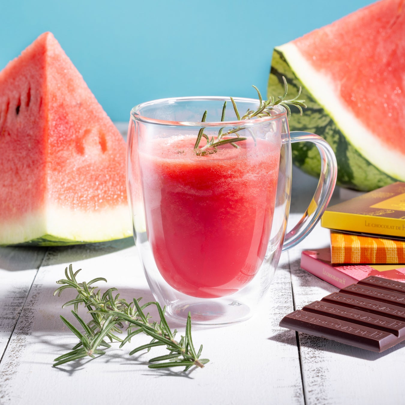 ローズマリーの香りとショコラの濃厚な味わいを加える事で西瓜の良さが引き立ち、大人も楽しめるドリンクに仕上げました。
